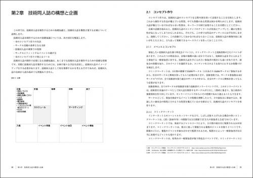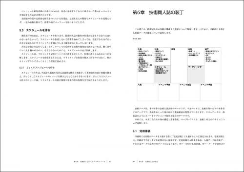 本書では、技術同人誌の企画、制作に関する方針、スケジュールの立て方、技術同人誌の執筆、紙媒体の入稿、イベント準備や当日の運営に関する様々な知識を、プロジェクトマネージメント的思考法で体系的に得ることができます。