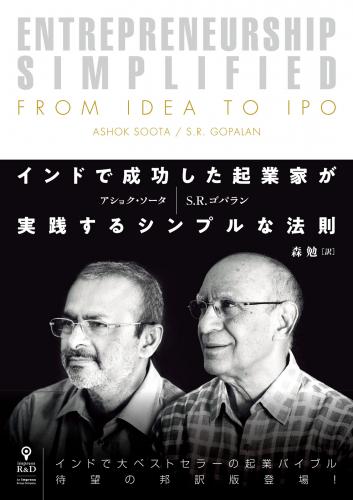 本書は2016年に発行され、インドでベストセラーとなった『Entrepreneurship Simplified』(アントレプレナーシップ・シンプリファイド)』の邦訳版です。著者はインドとアメリカに拠点を置く連続起業家でインドのIT業界の重鎮であるアショク・ソータ氏と、S.R.ゴパラン氏。